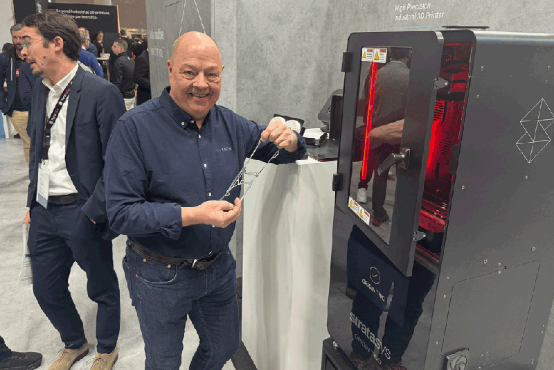 Under årets Formnext intervjuvades Protechs vd, Anders Brask, av 3dp.se om de mest intressanta nyheterna på mässan. En av de största var Stratasys nya silikonmaterial P3 Silicone 25A, utvecklat tillsammans med Shin-Etsu för Origin-plattformen. Materialet är godkänt för medicintekniska applikationer och ses som ett genombrott eftersom det är ett äkta silikon som dessutom kan 3D-printas snabbare och mer kostnadseffektivt än formsprutning.