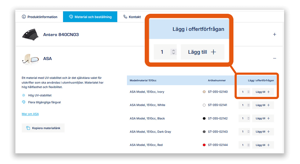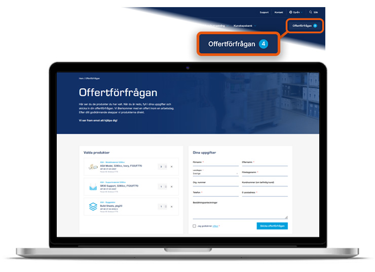 Här går vi igenom hur du enkelt och smidigt skickar in offertförfrågningar för förbrukningsmaterial till din 3D-skrivare.