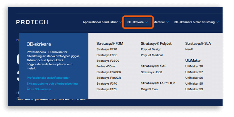 På Protechs webbplats kan du enkelt lägga en offertförfrågan på material och tillbehör till din 3D-skrivare. Observera att detta inte är en direktbeställning online.